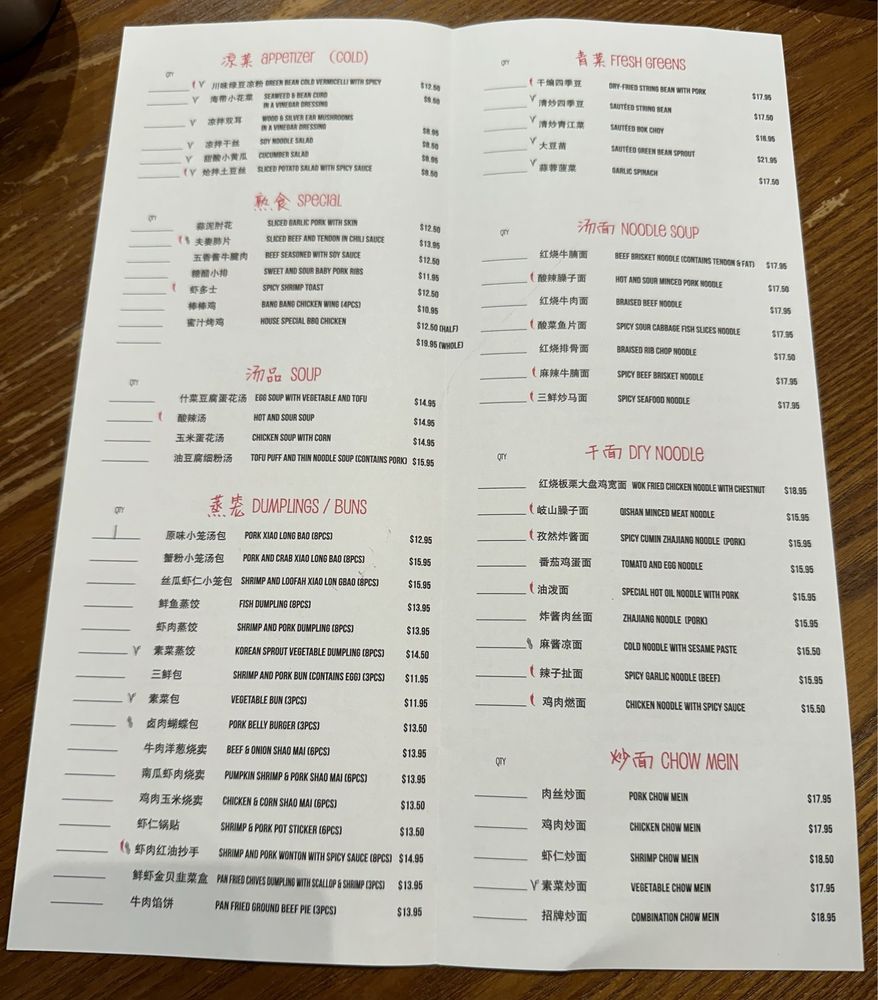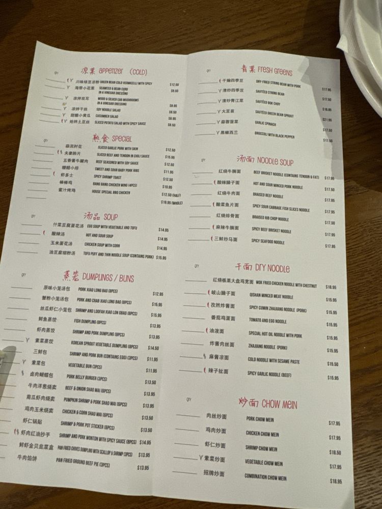 The menu features a delightful selection of appetizers like the Green Bern Cold Vermicelli and the refreshing Cucumber Salad, perfect for whetting your appetite. The specials shine with standout options such as Sliced Garlic Pork and Spicy Shrimp Toast, offering bold flavors that tantalize the taste buds.
